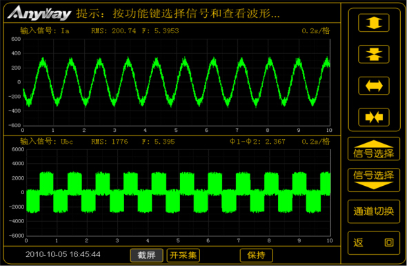 輸入信號(hào)經(jīng)高速A/D采樣,經(jīng)過(guò)數(shù)字運(yùn)算,將數(shù)據(jù)存儲(chǔ)于緩沖存儲(chǔ)器內(nèi),結(jié)果顯示在屏幕上??蓽y(cè)量電壓、電流、有功功率、無(wú)功功率、功率因數(shù)等,以及進(jìn)行諧波分析,測(cè)量顯示電壓、電流、功率等的基波值和各次諧波值,并顯示其曲線。