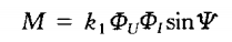 圖1是單相機(jī)電式電能表測(cè)量機(jī)構(gòu)簡(jiǎn)圖,其主要組成部件已在圖注中說(shuō)明。由硅鋼片疊成的電壓、電流鐵心,分別繞有電壓線圈和電流線圈。單相電路的相電壓U加在電壓線圈,就有電流IU流經(jīng)該線圈,產(chǎn)生穿過鋁質(zhì)轉(zhuǎn)盤的交變電流工作磁通ΦI。有相位差的電壓、電流工作磁通,從不同位置穿過轉(zhuǎn)盤并在轉(zhuǎn)盤中感生渦流,各磁通與渦流相互作用,形成驅(qū)動(dòng)轉(zhuǎn)盤轉(zhuǎn)動(dòng)的驅(qū)動(dòng)力矩(平均值:如下式)。