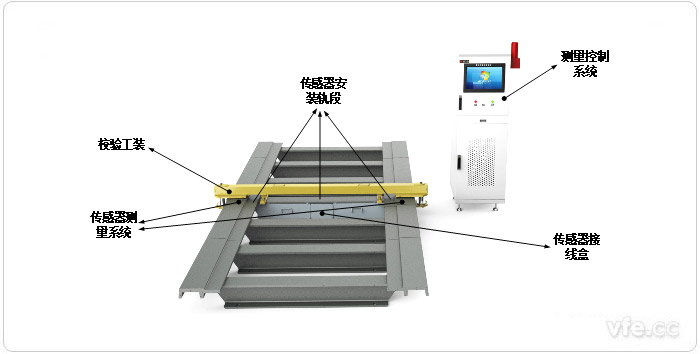 磁浮整車間隙檢測系統(tǒng)由傳感器安裝軌段、傳感器測量系統(tǒng)、測量控制系統(tǒng)組成。