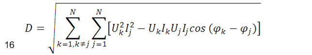 畸變無(wú)功功率有時(shí)也稱畸變功率,上式中,N為電壓、電流最大諧波次數(shù)中的小者。某些文獻(xiàn)中也將Q稱為無(wú)功功率,而將Q和D的方和根稱為廣義無(wú)功功率。